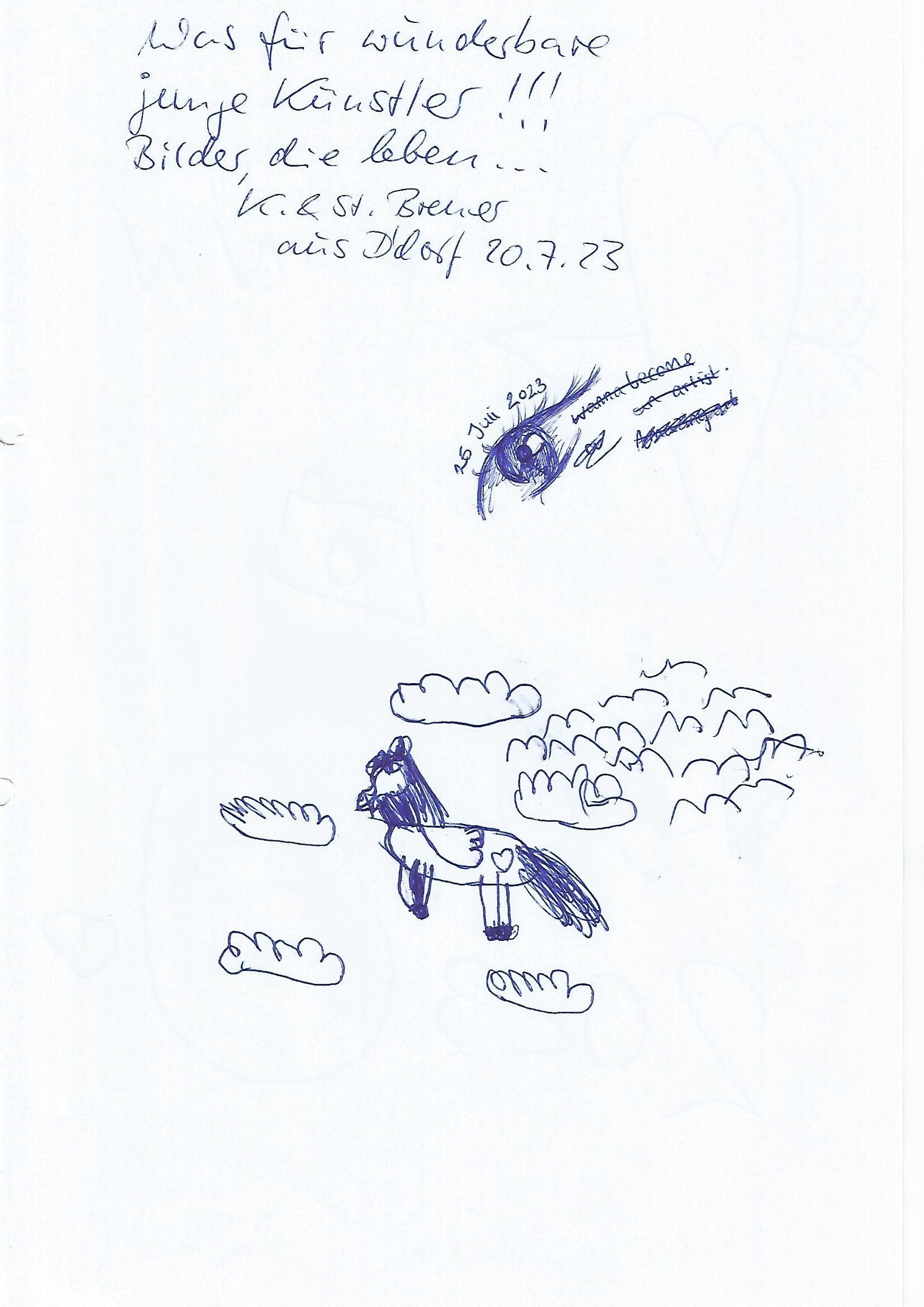 Dr.Christof Spannhoff, der die jungen Talente sofort dazu einlud, ihre Träume mit der Öffentlichkeit zu teilen. Zum Blues fallender Eicheln fingen die Bleistifte noch schneller auf Papier zu rascheln und Pinsel zu tanzen an, in Vorfreude auf eine große Ausstellung.